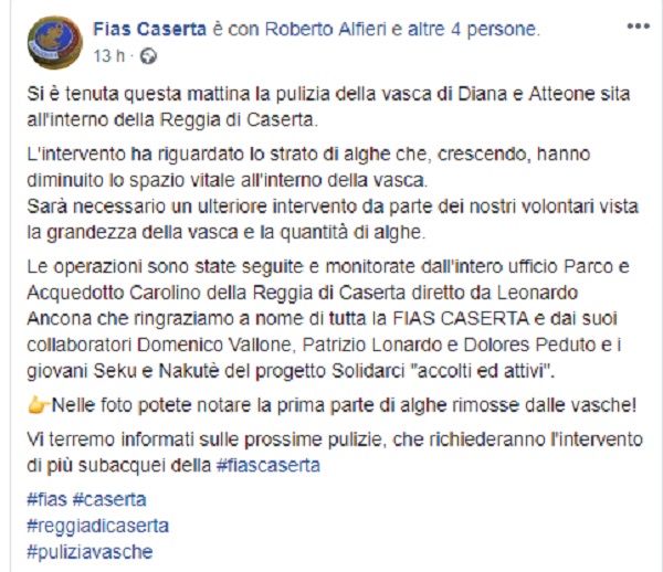 Questo il post pubblicato sulla pagina fb 'Fias Caserta'