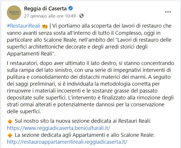 Sul nostro sito la nuova sezione dedicata ai Restauri Reali: https://www.reggiadicaserta.beniculturali.it/