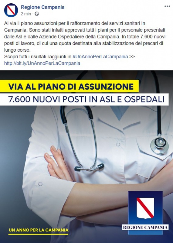 Questo quanto pubblicato sulla pagina facebook della Regione Campania: