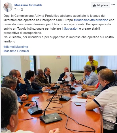 Questo il post pubblicato sulla pagina fb di Massimo Grimaldi.