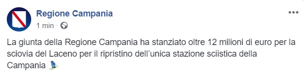 Questo quanto pubblicato sulla pagina facebook della Regione Campania