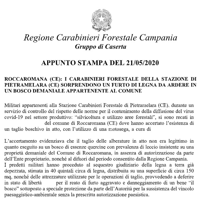 Pubblichiamo nota stampa del Comando Provinciale Carabinieri di Caserta