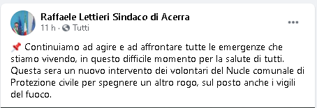 Lo apprendiamo dalla pagina Facebook di Raffaele Lettieri, Sindaco di Acerra.
