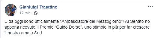 Questo il post pubblicato sulla bacheca fb del Presidente di Confindustria Caserta Gianluigi Traettino.