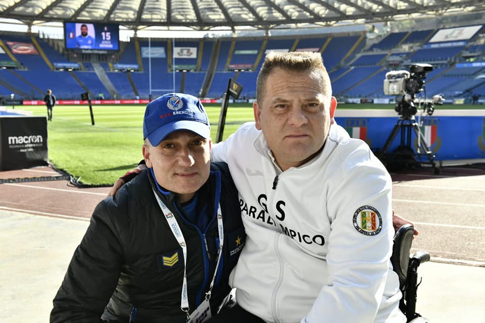 "Ed eccoci presenti allo Stadio Olimpico per il Torneo 6 nazioni di rugby in occasione dell'incontro tra Italia e Galles. Entreremo in campo insieme agli altri atleti dei gruppi sportivi militari, prima del match con le bandiere delle nazioni partecipanti. Ancora una volta lo sport abbatte le barriere tutti in campo senza distinzione, lo sport è per tutti, la disabilità non è un limite."