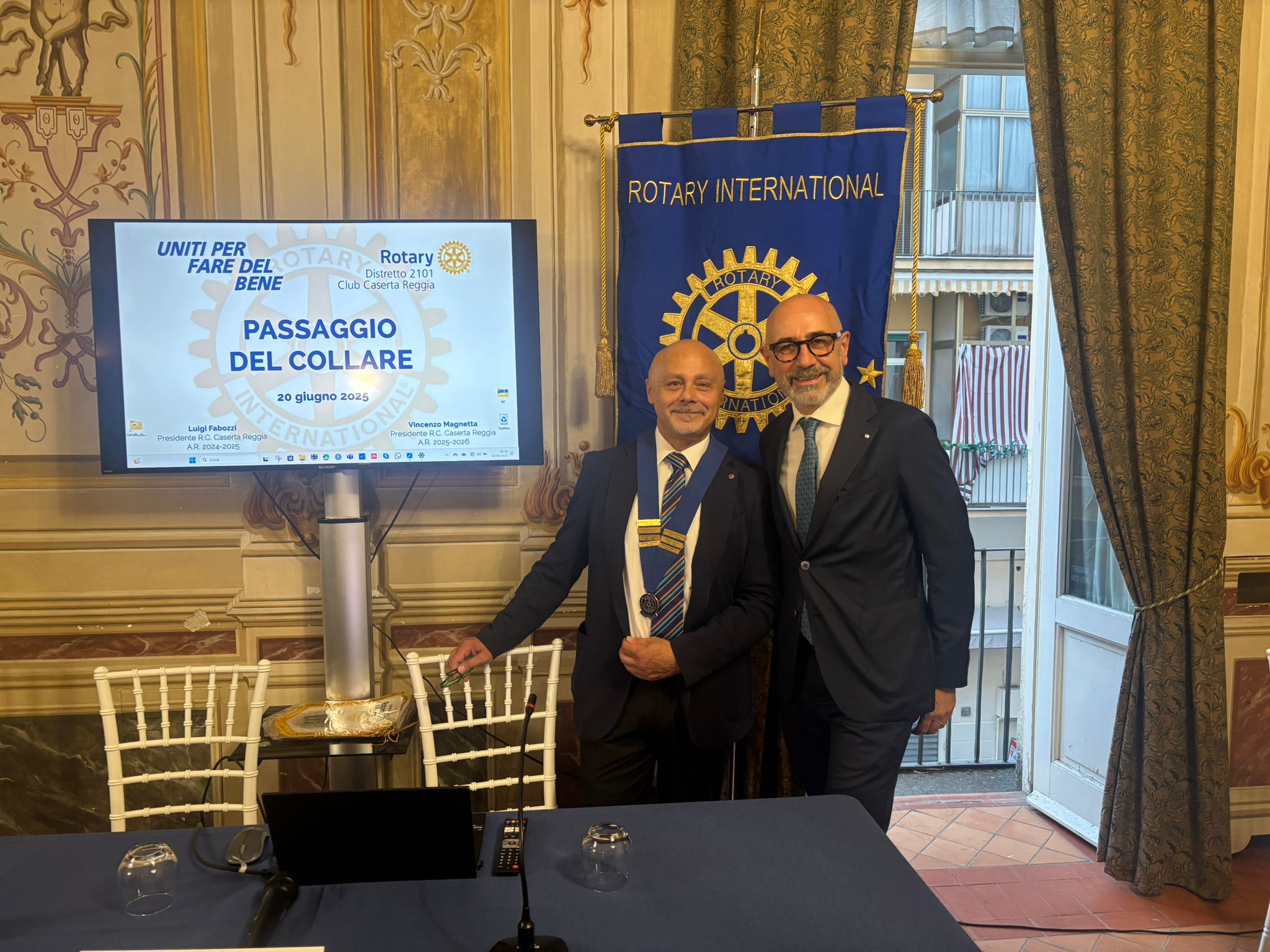 Questo il comunicato stampa pervenutoci in redazione: "Nella splendida cornice del Palazzo Paternò, nel cuore della città di Caserta, si è svolta la cerimonia del Passaggio del Collare del Rotary Club Caserta Reggia, uno dei momenti più significativi della vita rotariana. Un evento partecipato e sentito, che ha sancito il passaggio - si legge nel comunicato - di consegne tra il presidente uscente Luigi Fabozzi e il nuovo presidente Vincenzo Magnetta per l’anno rotariano 2025/26.