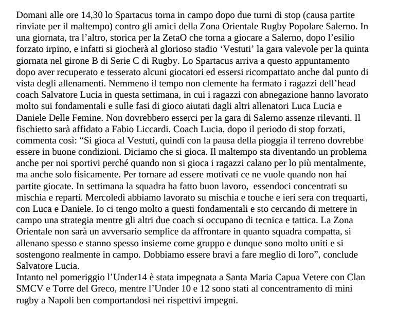 Di seguito, il testo del comunicato dello SPARTACUS RUGBY SOCIAL CLUB, giunto ieri in redazione.
