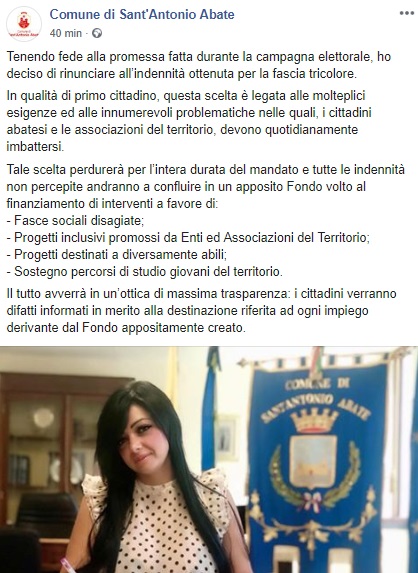 Questo quanto pubblicato dalla pagina Facebook del Comune di Sant'Antonio Abate: