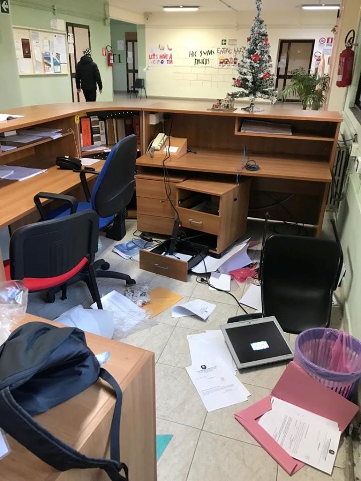 "Durante la scorsa notte è stato perpetrato l'ennesimo furto nei locali della nostra istituzione scolastica. Lo scenario che si è presentato agli occhi del personale, alle ore 08.00 di questa mattina, è stato a dir poco allarmante: inferriate divelte, tavoli rovesciati, uffici vandalizzati. Tutto per una magra refurtiva. Un'azione ignobile, un attacco al cuore della cultura, una scuola, un luogo "sacro", degno di rispetto, il luogo dove si diventa "cittadini consapevoli", capaci di interpretare criticamente la realtà. Ogni danno arrecato a una scuola è un danno arrecato ai nostri giovani! Questo triste episodio ci ha ferito profondamente, ma non ha arrestato né arresterà il desiderio di diffondere cultura, di far nascere lo spirito critico nelle giovani generazioni, di infondere nelle coscienze il prezioso valore dell'onestà, la forza della legalità."