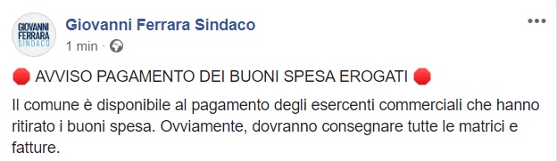 Questo quanto pubblicato sulla pagina fecbook del Sindaco Ferrara: