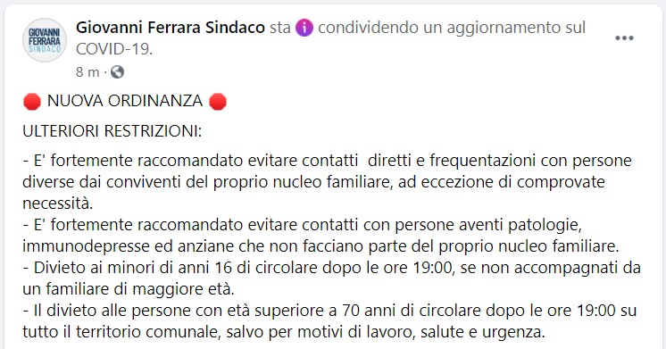 Questo quanto pubblicato sulla pagina FB del Sindaco di S.Felice a Cancello