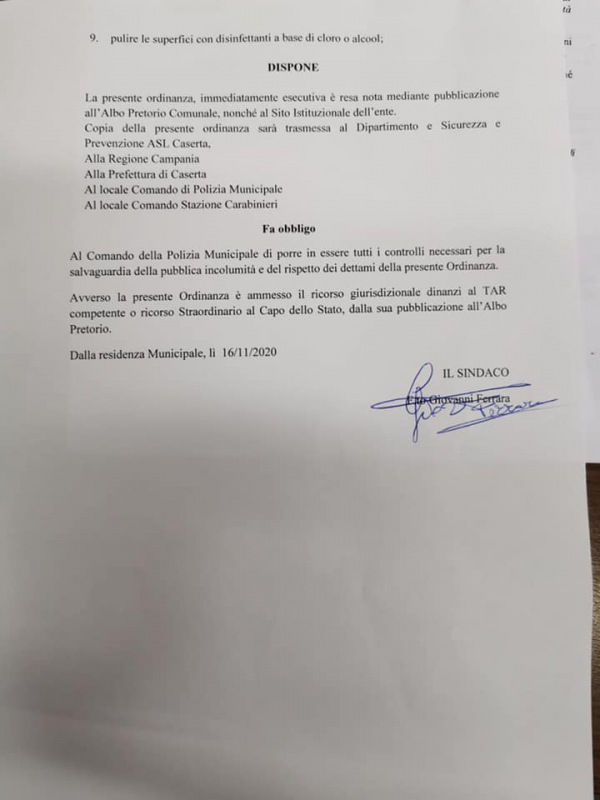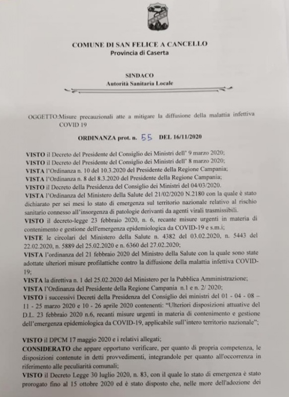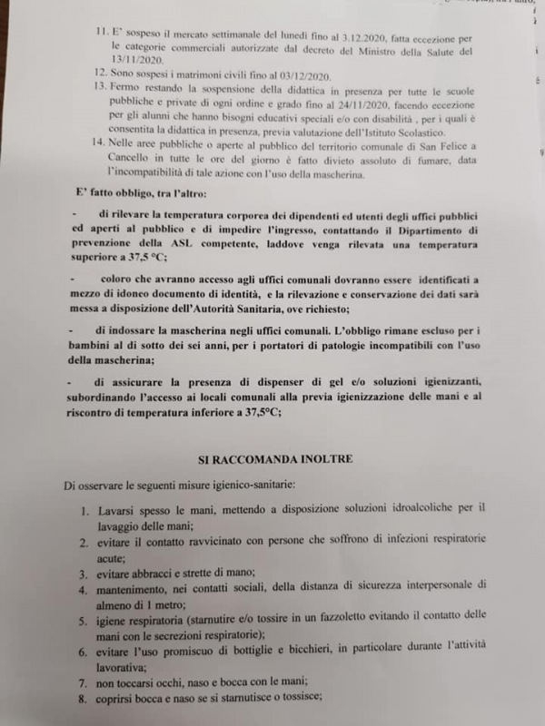 Questa l'Ordinanza del Comune di S.Felice a C.: