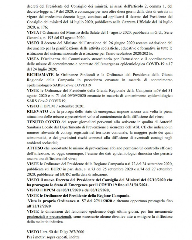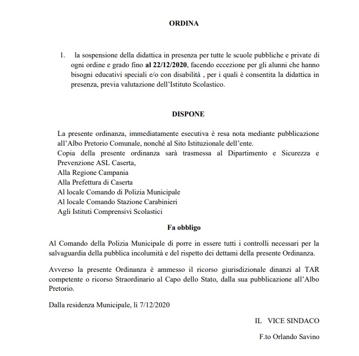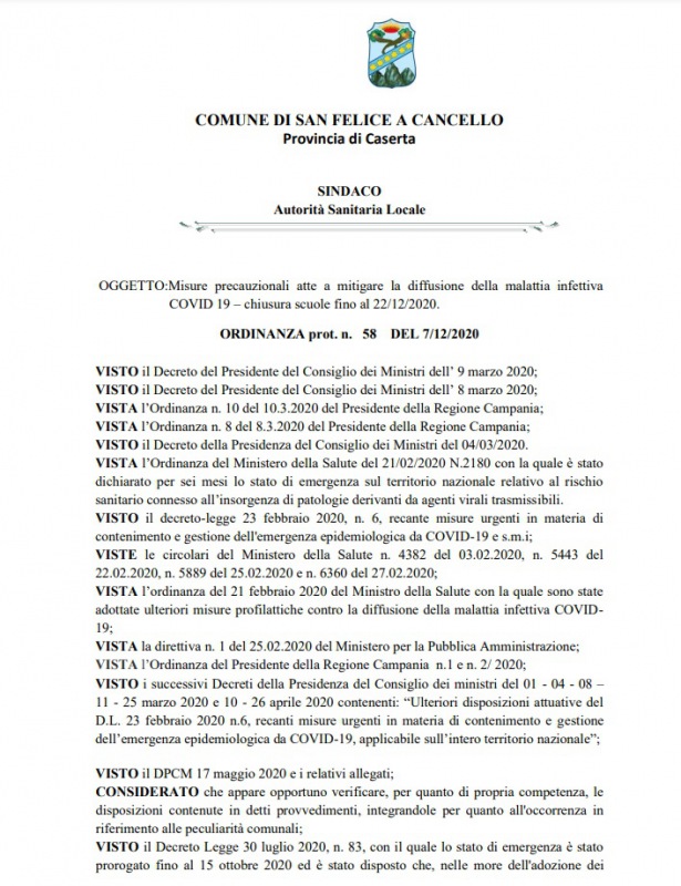 Questa l'Ordinanza dels Sindaco Ferrara:
