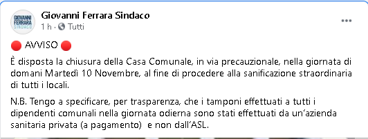 Lo apprendiamo dalla pagina Facebook di Giovanni Ferrara, Sindaco di San Felice a Cancello.