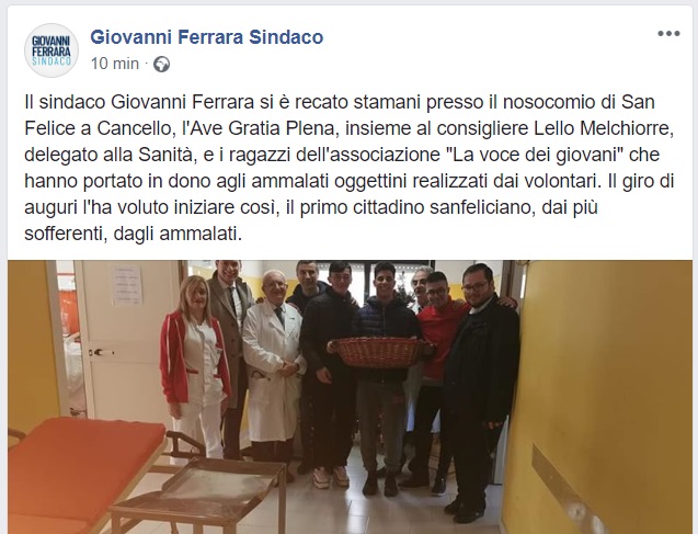 Questo quanto pubblicato dal Sindaco Ferrara
