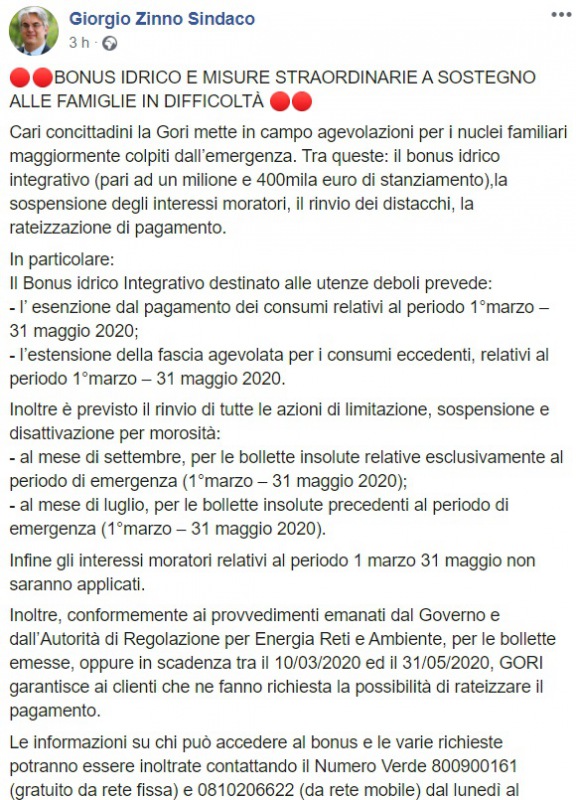 Questo quanto apprendiamo dalla poagina facebook del Sindaco Zinno: