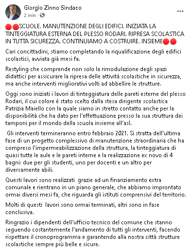 S.G. a CREMANO: "SCUOLE. MANUTENZIONE EDIFICI. INIZIATA TINTEGGIATURA ESTERNA del PLESSO RODARI"