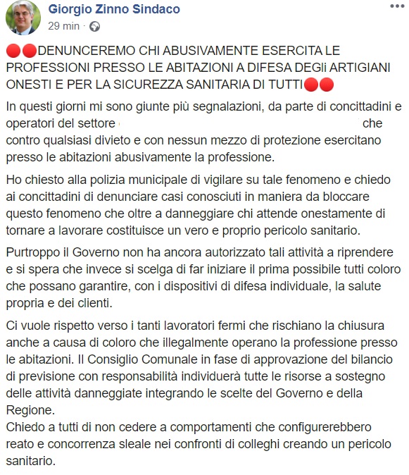 Questo parte di quanto apprendiamo dalla pagina facebook del Sindaco Zinno: