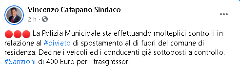 Lo apprendiamo dalla pagina Facebook del Sindaco di San Giuseppe Vesuviano, Vincenzo Catapano.