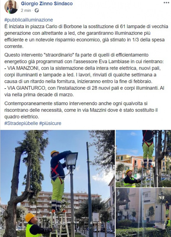 Questo quanto appreso dalla pagina facebook del Sindaco Zinno: