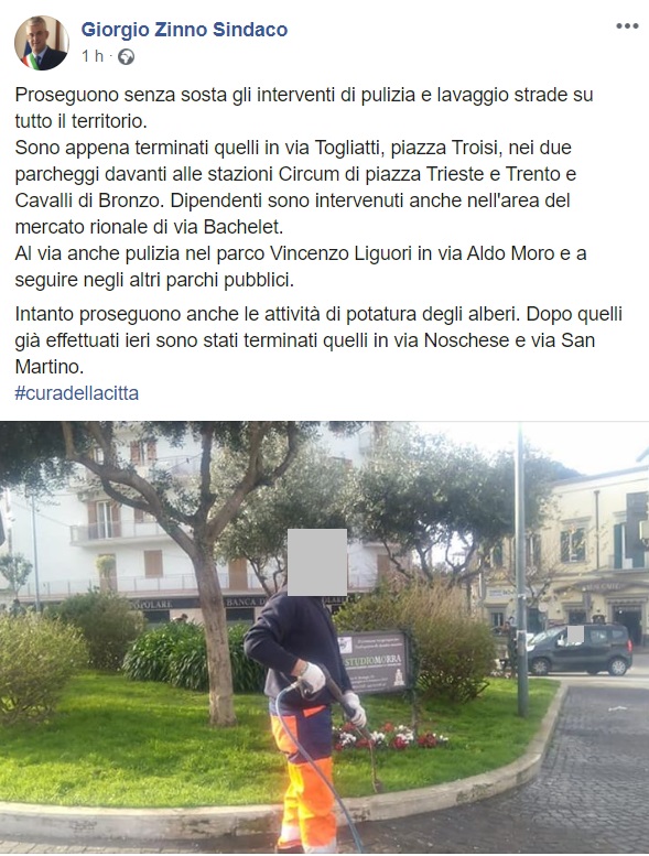Questo quanto pubblicato sulla pagina facebook del Sindaco Zinno: