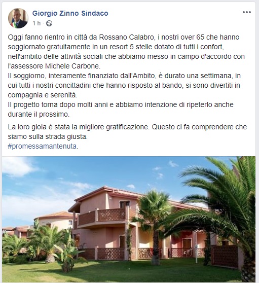 Il Comune di San Giorgio a Cremano nell'ambito delle politiche società ha garantito un soggiorno marino agli over 65. Questo il messaggio del Sindaco Zinno