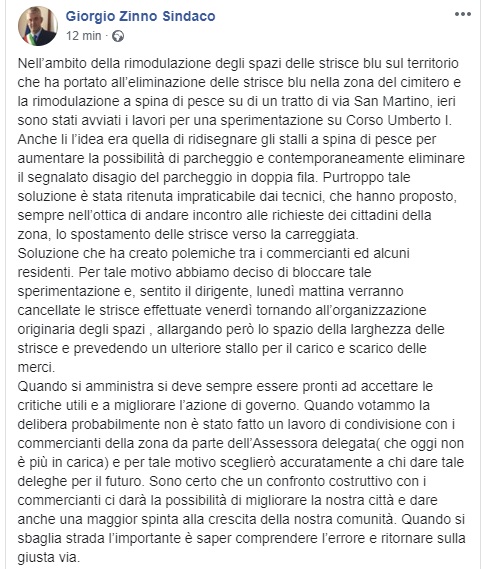 Questa la lunga riflessione del Sindaco di San Giorgio a Cremano, Giorgio Zinno