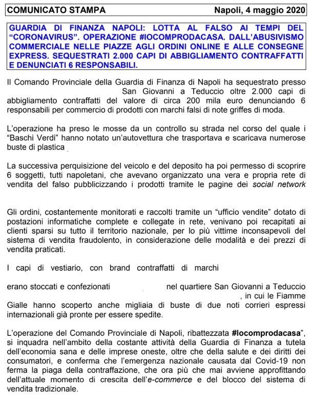 Pubblichiamo nota stampa della Guardia di Finanza Comando Provinciale Napoli