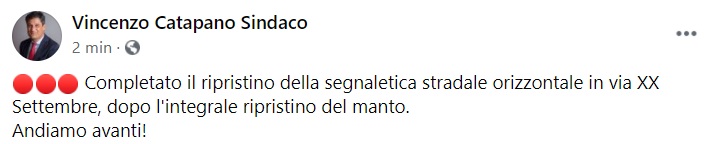 Questo quanto apprendiamo dalla pagina facebook del Sindaco Catapano: