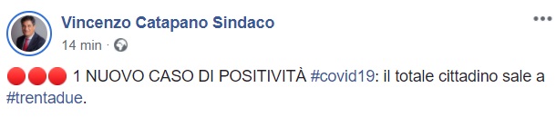 Questo quanto pubblicato sulla pagina facebook del Sindaco Catapano: