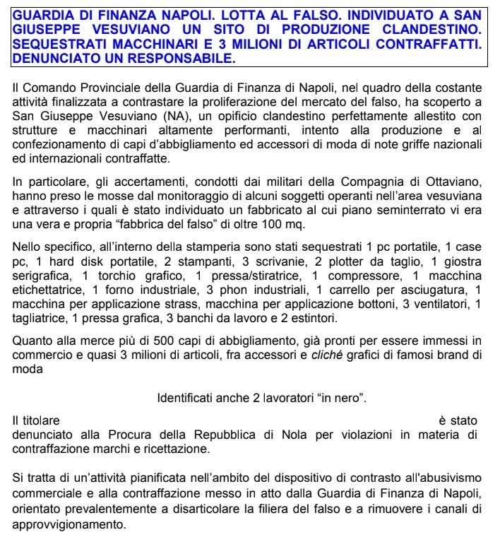 Pubblichiamo parte della nota stampa del Comando Provinciale Napoli della GDF