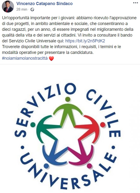 Questo quanto pubblicato sulla pagina facebook del Sindaco di San Giuseppe Vesuviano, Vincenzo Catapano: