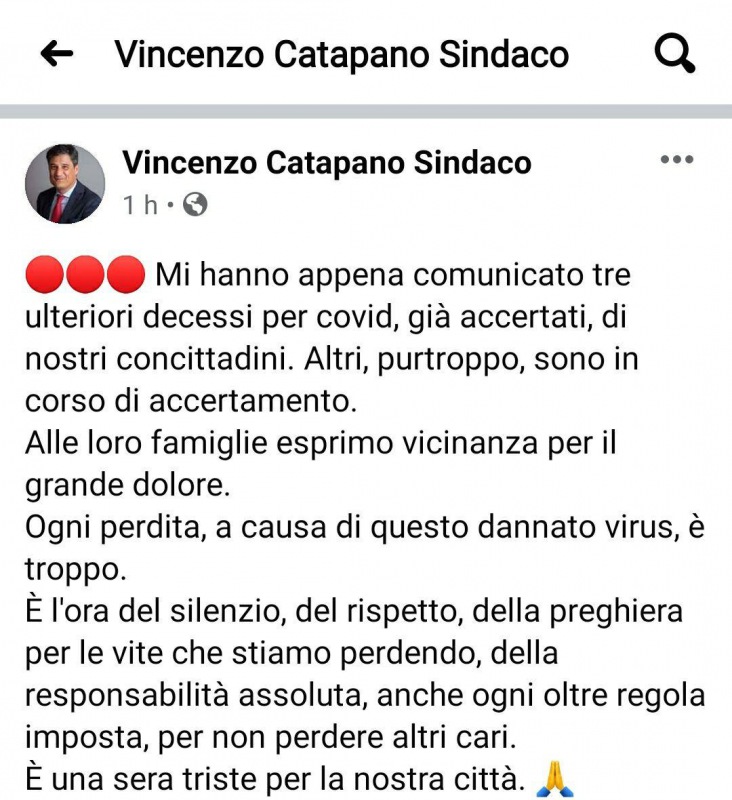 Lo apprendiamo dalla pagina Facebook di Vincenzo Catapano, Sindaco di San Giuseppe Vesuviano.