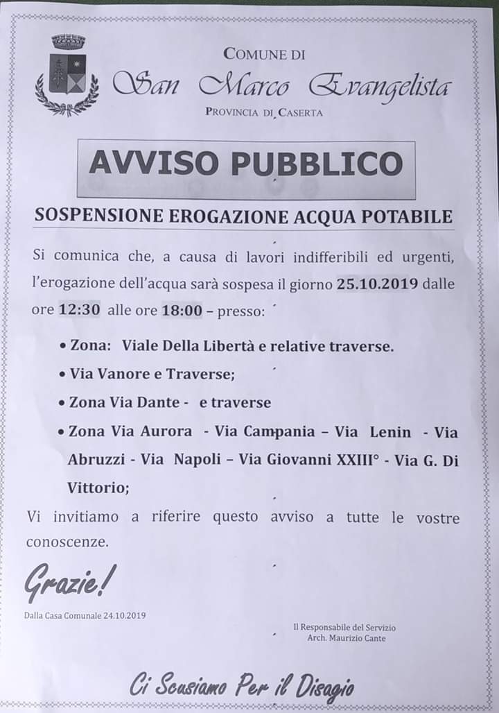 Questo quanto comunicato dal Comune di San Marco Evangelista con questo manifesto