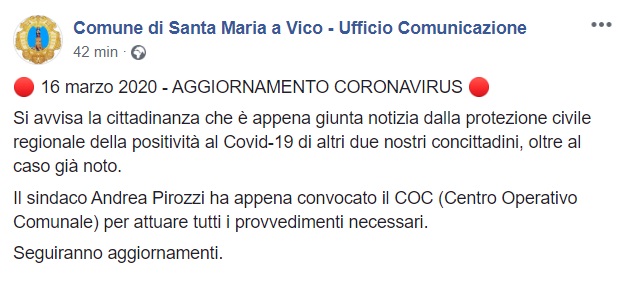 Questo quanto pubblicato sulla pagina facebook del Comune di SMAV: