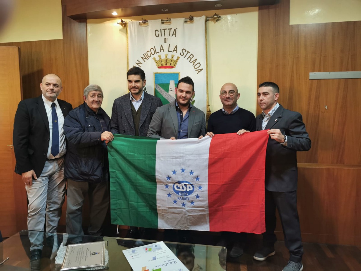 Di seguito il comunicato giunto in redazione dall'ufficio stampa del Sindaco di San Nicola La Strada. "Con una breve cerimonia il Sindaco di San Nicola la Strada Vito Marotta, ha conferito un simbolico riconoscimento al cittadino sannicolese Giovanni Santoro, che di recente è diventato campione del mondo World Unified Championship Karate 2019 che si è svolto a Marina di Carrara. - Prosegue il comunicato - Con il primo cittadino erano presenti anche l’assessore Lucio Bernardo ed il consigliere Antonio Terracciano che si è reso promotore dell’iniziativa. Era presente anche il responsabile nazionale karate MSP Manuel Bruno che ha consegnato all’alteta sannicolese l'attestato di arbitro nazionale del settore karate. Giovanni Santoro è istruttore presso la palestra Asd TKR Karate - si legge nella nota - sita in via Petrarca a San Nicola la Strada, il cui staff tecnico è composto dai maestri Flaviano Bianchi e Marco Pio Ricci. La società di arti marziali indice corsi gratuiti per i sannicolesi su antibullismo, difesa personale, corso per bambine, ragazze e donne ed accoglie per corsi di karate, adulti e bambini in difficoltà economica. Santoro nel 2018 ha vinto la coppa Italia, nel 2019 è stato campione italiano del MPS WTKA e - continua il comunicato - primo classificato a livello mondiale. “Il risultato ottenuto da Giovanni Santoro testimonia una volta di più che lo sport è cultura, intesa non solo come erudizione, ma anche come cura del proprio corpo e relazione con gli altri. Da questi valori ogni buon amministratore ha il dovere di partire per costruire il futuro della comunità” le parole del consigliere Antonio Terracciano - com si legge nella nota - . “Ci congratuliamo con il nostro concittadino per il prestigioso traguardo – ha dichiarato il Sindaco Vito Marotta – ci auguriamo che il suo successo sia foriero di altri e maggiori traguardi sia per lui che per i compagni di palestra e - conclude il comunicato - diventi uno sprone per i giovani sannicolesi per avvicinarsi sempre di più allo sport”. "