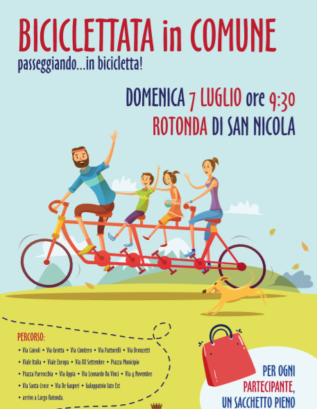 "Torna a San Nicola la Strada la “biciclettata”, organizzata dall’Amministrazione Comunale guidata dal Sindaco Vito Marotta, con la collaborazione del Nucleo Comunale dei volontari della Protezione Civile.-spiega la nota-L’appuntamento per bambini e famiglie è alle 9,30 dalla Rotonda di San Nicola, nei pressi della Chiesa di Maria SS. Della Pietà, poi tutti insieme si proseguirà per via Cairoli, via Grotta, via Cimitero, via Patturelli, via Bronzetti, viale Italia,, viale Europa, via XX Settembre, piazza Municipio, piazza Parrocchia, via Appia, via Leonardo da Vinci, via IV novembre, via Santacroce, via De Gasperi, Galoppatoio est e arrivo in largo Rotonda.-spiega la nota-Previsto per ogni partecipante un sacchetto con tanti gadget. -spiega la nota-“E’ una importante iniziativa per vivere una mattinata insieme e soprattutto una passeggiata ecologica – commenta il sindaco Vito Marotta – invito tutti i cittadini a partecipare, specie le famiglie con i bambini piccoli, sarà bello vivere insieme questa esperienza in bicicletta per le strade della città”.