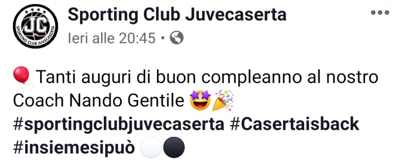 Lo apprendiamo dalla pagina Facebook dello Sporting Club Juvecaserta: