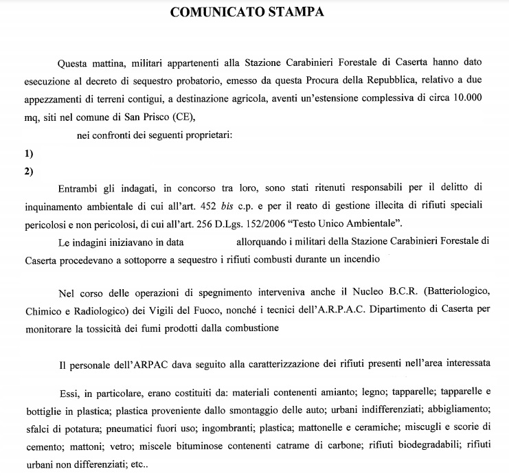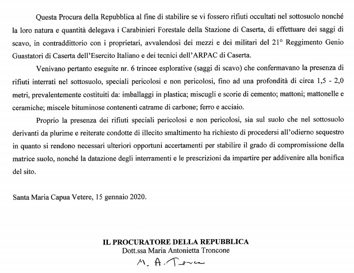 Pubblichiamo nota stampa della Procura di SMCV
