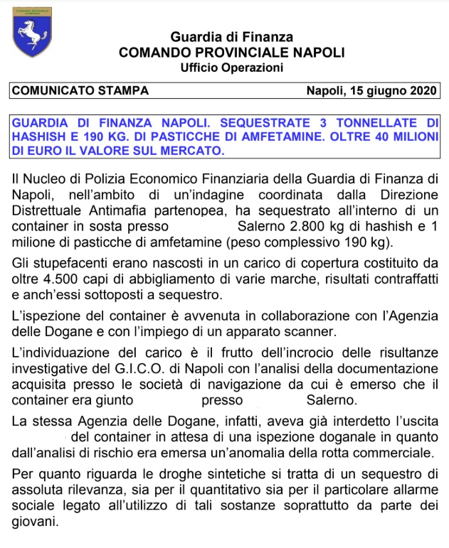 Pubblichiamo nota stampa GDF Napoli