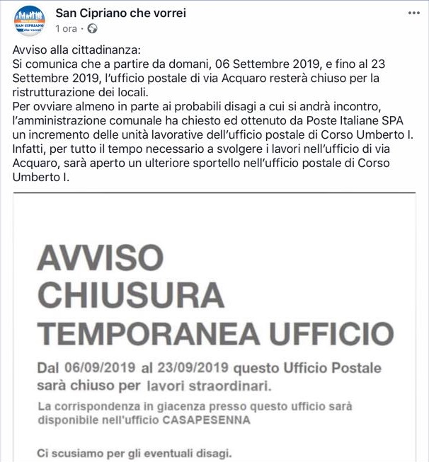 Questo quanto apprendiamo dalla pagina FB San Cipriano che vorrei:ruota il telefono per vedere bene
