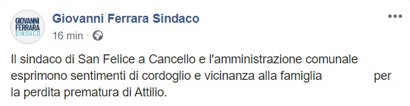 Questo quanto pubblicato sulla pagina facebook del Sindaco Ferrara:
