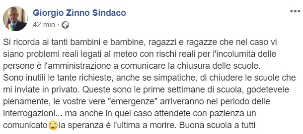 Questo quanto pubblicato su facebook dal Sindaco di San Giorgio a Cremano, Giorgio Zinno: