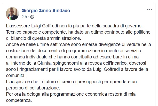 Apprendiamo la notizia dal profilo Facebook del Sindaco di San Giorgio a Cremano Giorgio Zinno