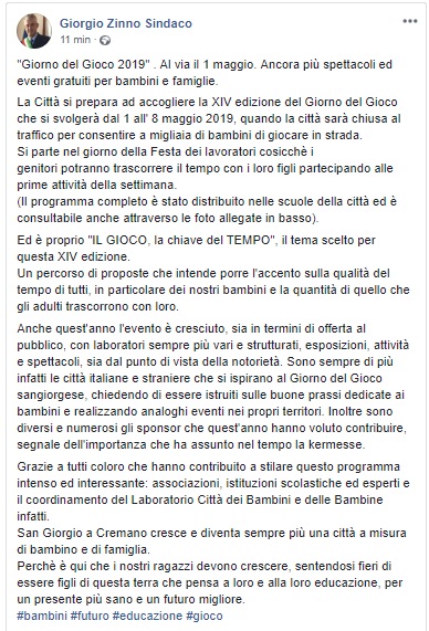 Questo quanto apprendiamo dal profilo Fb del Sindaco Giorgio Zinno