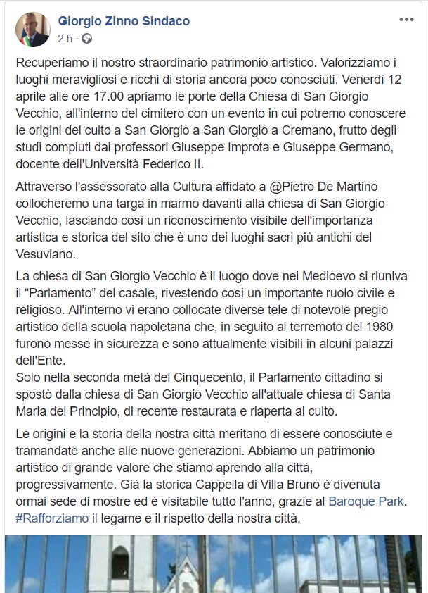 Questo quanto apprendiamo dal profilo Fb del Sindaco Giorgio Zinno