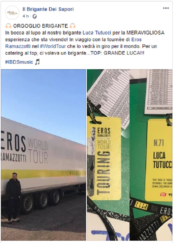 Questo il post pubblicato sulla pagina fb ufficiale de 'Il Brigante dei Sapori'