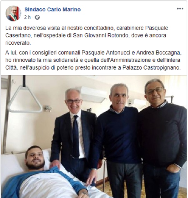 Questo il post pubblicato sulla pagina fb ufficiale del Sindaco di Caserta Carlo Marino.