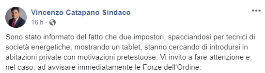 Questo il post pubblicato su Facebook dal sindaco di San Giuseppe Vesuviano Vincenzo Catapano: