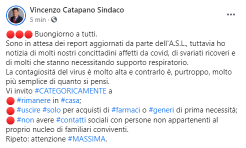 Lo apprendiamo dalla pagina Facebook del Sindaco di San Giuseppe Vesuviano Giuseppe Catapano